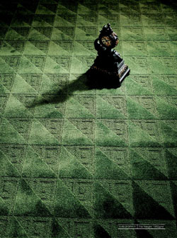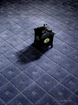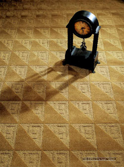 春之聲地毯 采用高割低圈的織法,形成毯面不同的幾何圖案,再配上單一穩(wěn)重的顏色,呈現(xiàn)出凹凸不定的色彩變化。